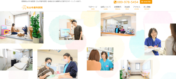 予讃線の伊予和気駅から徒歩10分の場所にある「太山寺歯科医院」は、「自分で受けたい、家族にしたい治療を行う」をコンセプトに一般歯科・小児歯科・口腔外科、矯正治療、ホワイトニング・インプラント・訪問診療まで幅広く対応しています。