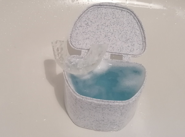 可能であれば夜寝る前などは歯ブラシで丁寧にマウスピースを擦り洗いしたり、洗浄剤に浸けたりするとさらに清潔を保てます。