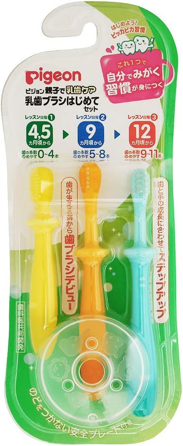 赤ちゃんの口は日々変化します。はじめてセットの乳歯ブラシはです。握りやすいハンドルと敏感な赤ちゃんの口と歯に優しいブラシを採用しており、喉突きを防ぐための取り外し可能な安全プレートが付いています。