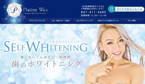 JR総武線「津田沼駅」2分の距離にある「Platine Wax:プラチナワックス」は、駅チカで便利なセルフホワイトニングとブラジリアンワックスのお店です。