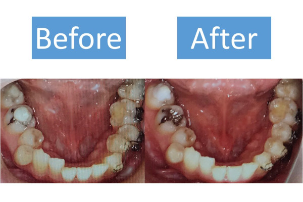 口内を半分ずつ矯正をしていて、半分終わったところ。